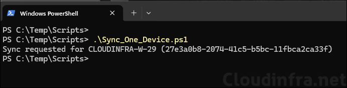Method 2: Force Intune Sync Using Sync-MgDeviceManagementManagedDevice
