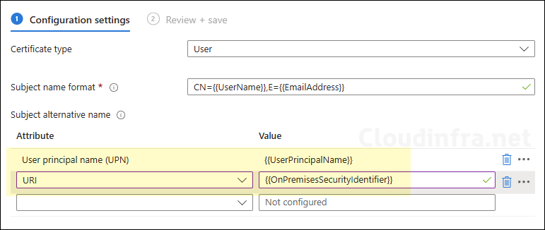 Certificate type: As we are deploying a user certificate to the Local user certificate store on the target device, we will select User. If you want to deploy a device based certificate which will be installed local computer certificate store, then go with Device.