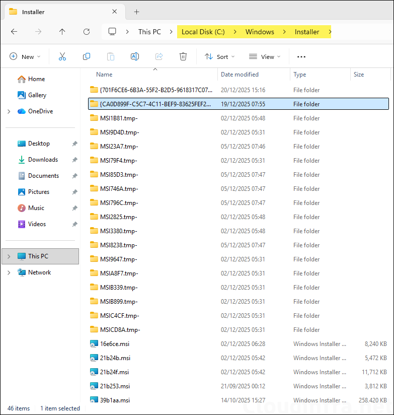 - As soon as the MSI appears, copy it immediately to another folder, for example, C:\Temp\RecoveredMSI\