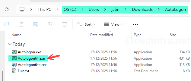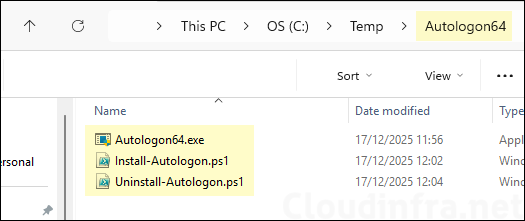 - Extract Autologon zip file into a folder; we will need Autologon64.exe from this folder. Copy this file and place it into a separate folder, which will be used for Win32 app deployment.