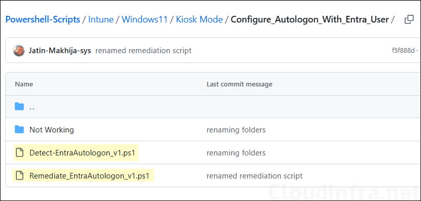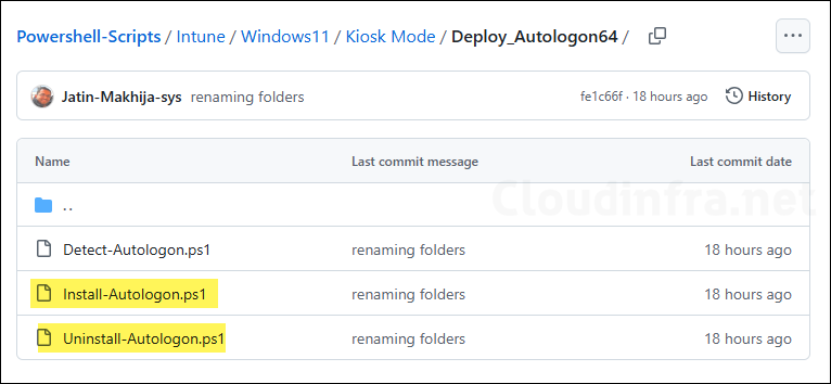 Next, download the Install-Autologon.ps1 and Uninstall-Autologon.ps1 PowerShell scripts from my GitHub repository: Powershell-Scripts/Intune/Windows11/Kiosk Mode/Deploy_Autologon64 · GitHub.