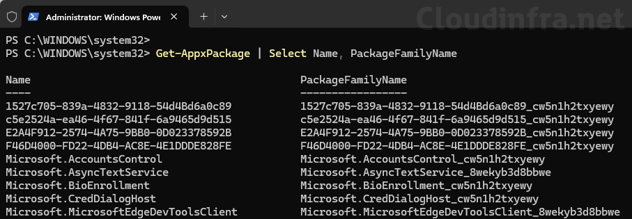 Another way to check the AUMIDs for the apps is to run Get-AppxPackage cmdlet.