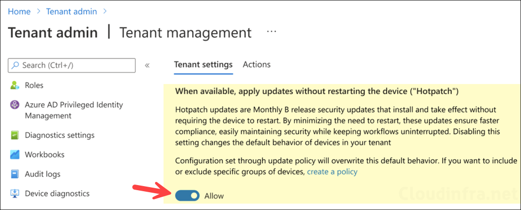 Starting May 2026, Windows Autopatch is enabling hotpatch updates by default. If you are not ready yet, then you can opt out of this by going to Microsoft Intune > Tenant administration > Windows Autopatch > Tenant management and selecting the Tenant settings tab. Switch off the toggle to opt-out.